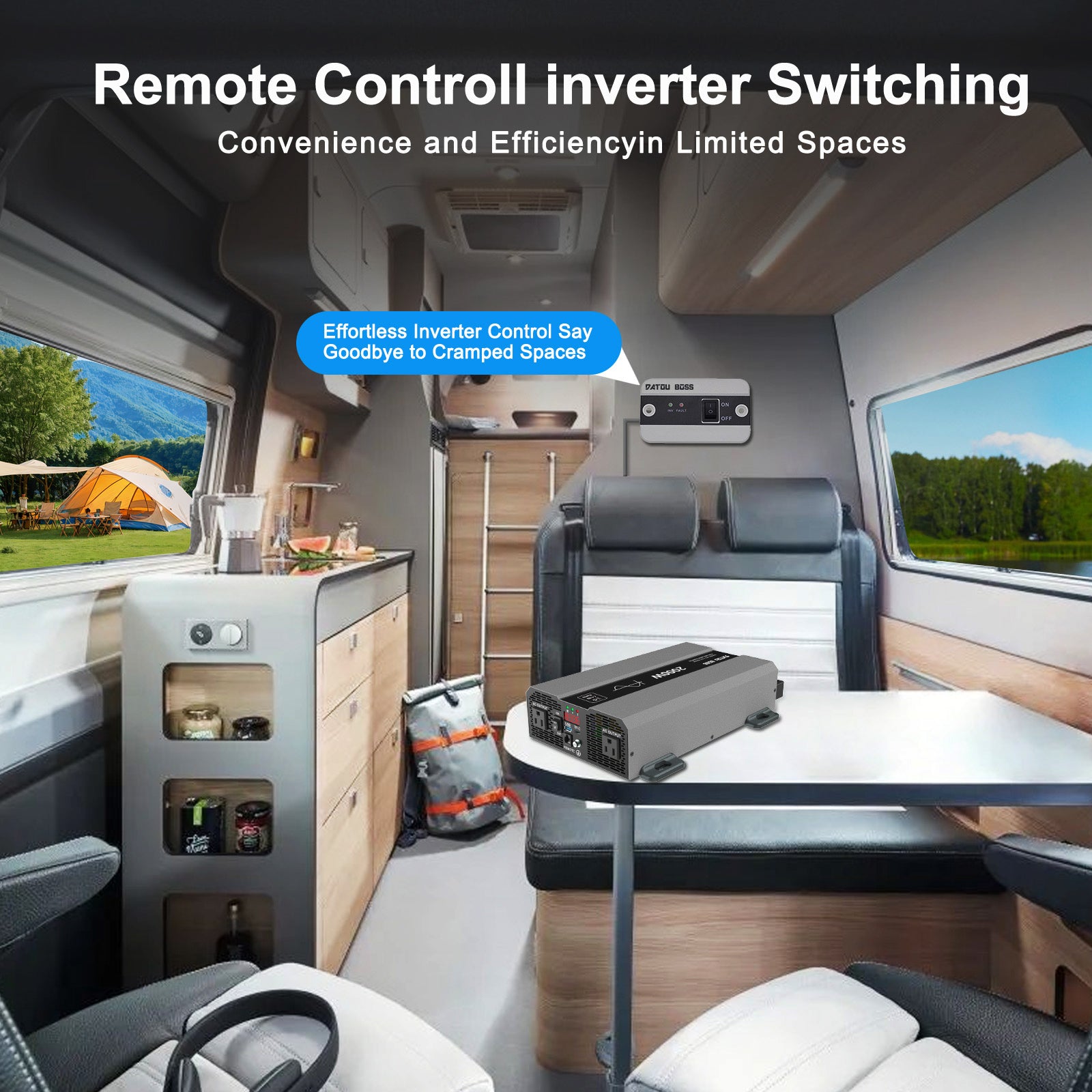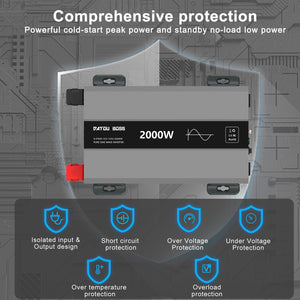 DATOUBOSS 2000W Pure Sine Wave Inverter, Car Power Inverter 12V to 120V AC Converter for RV, Truck, Solar, OutdoorL, Home with Dual AC and 20A Socket, 5V 2.1A USB, PD, Peak Surge 4000W, Remote Controller